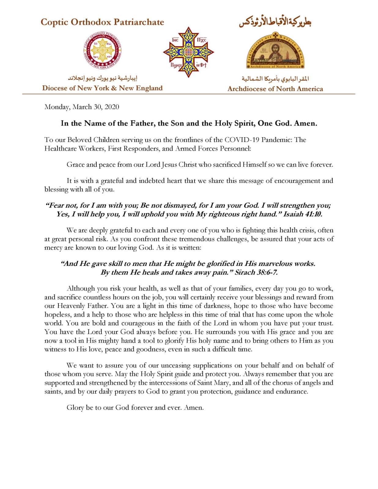 The Coptic Orthodox Archdiocese in New Jersey and the Diocese of New York and New England (“Archdiocese and Diocese”) will not tolerate sexual misconduct of any kind, including sexual abuse of minors by any of our clergy, employees or servants. If anyone is aware of any suspected incident of sexual abuse of a minor by any such person, we urge you to immediately report to law enforcement and also to your Regional Vicar, whose contact information may be accessed through your parish priest.